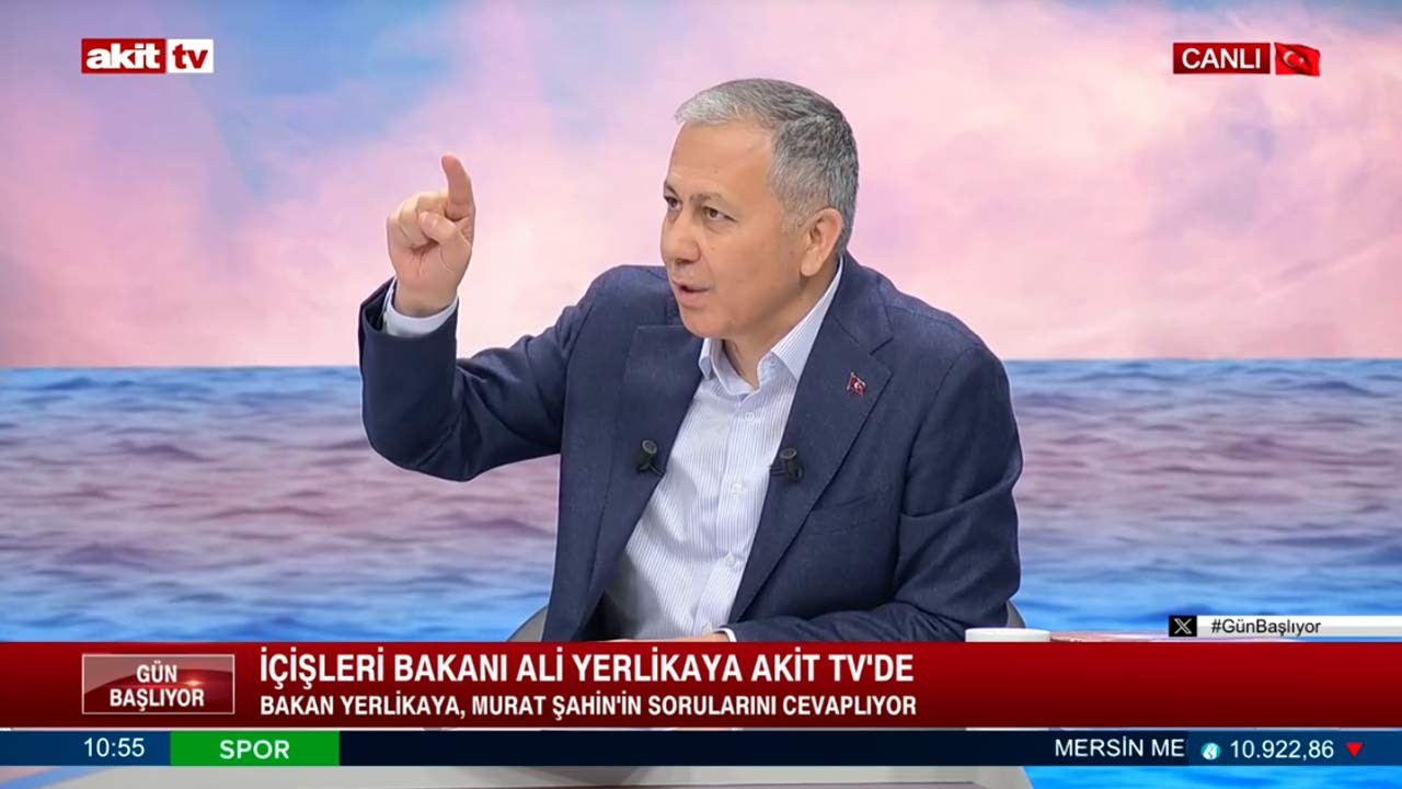 Milletin ekranı Akit TV, bugün İçişleri Bakanı Ali Yerlikaya'yı ağırladı. Yerlikaya, Gün Başlıyor programında, Murat Şahin’in sorularını cevapladı.