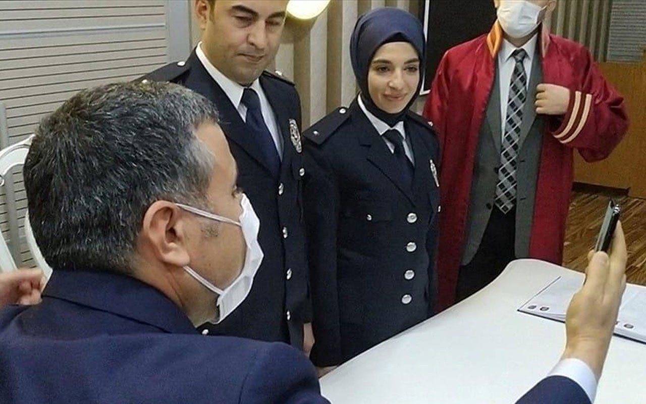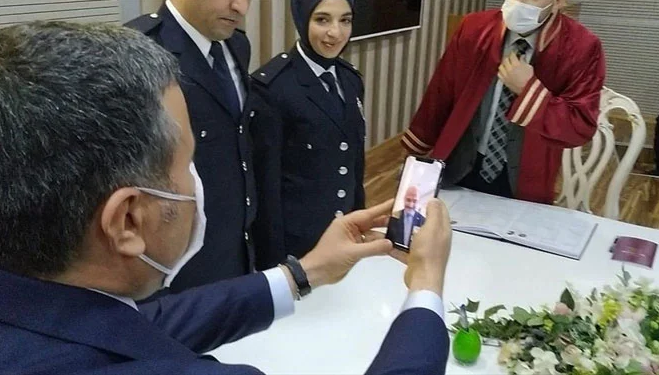 Polis çiftin nikahına görüntülü bağlandı