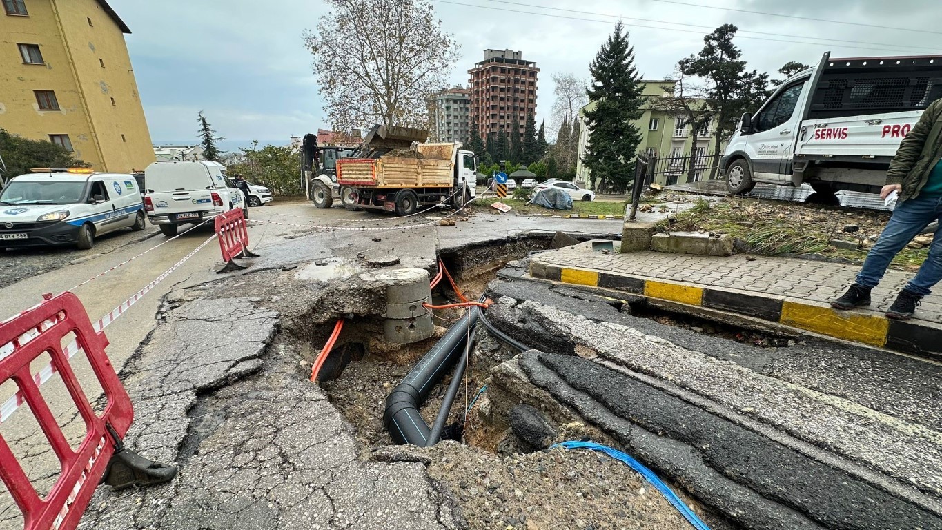 Trabzon’un Ortahisar ilçesinde süren içme suyu isale hattı çalışmasında borunun patlaması üzerine ortalık savaş alanına döndü.
