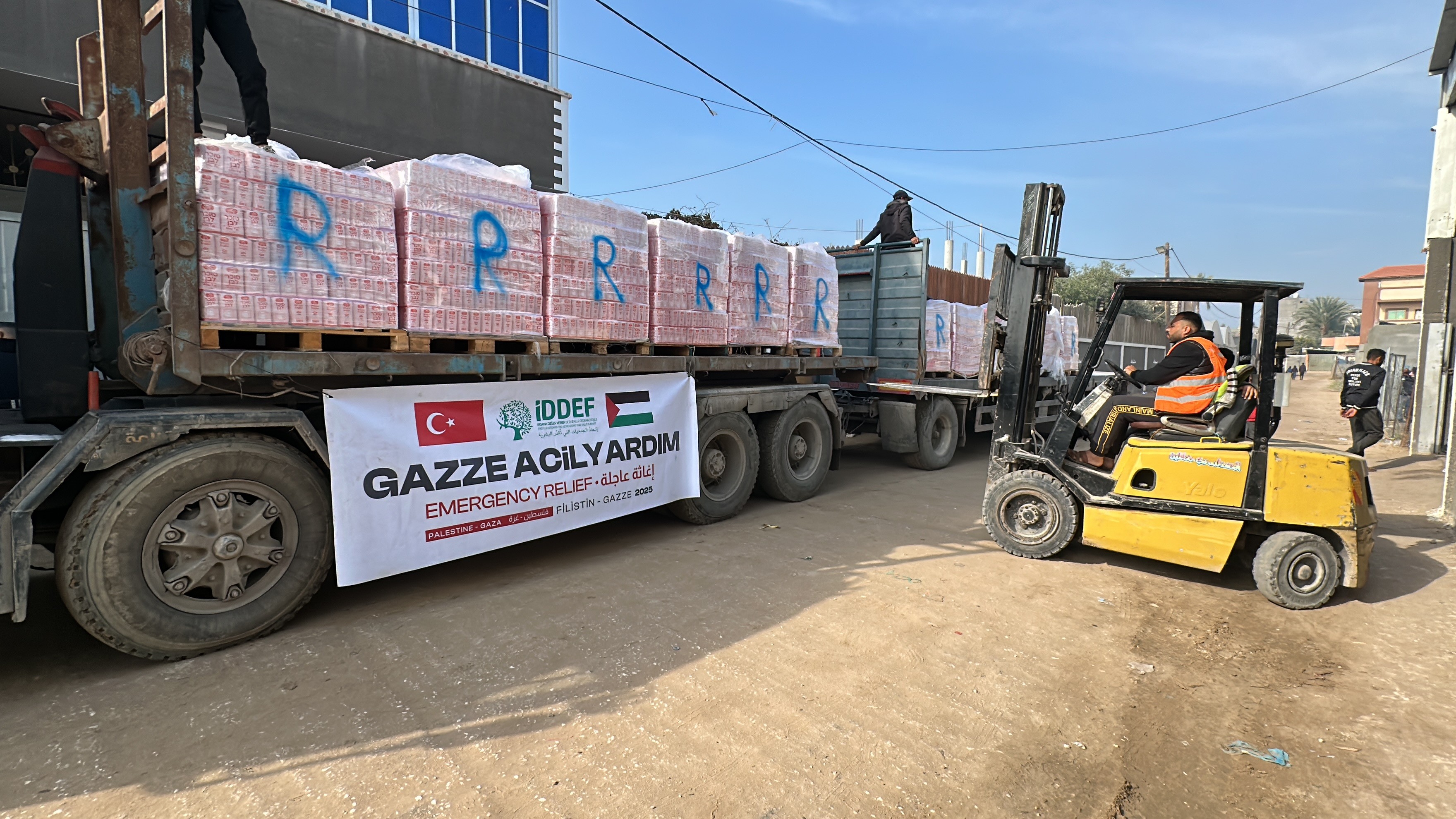 İnsana Değer Veren Dernekler Federasyonu (İDDEF), 7 Ekim’den bu yana olduğu gibi İsrail ile Hamas arasında varılan ateşkes anlaşmasının yürürlüğe girmesinin ardından da insani yardım yüklü tırlarını Mısır tarafındaki Refah Sınır Kapısı'ndan Gazze'ye gönderdi. Pirinç, şeker ve yağ gibi temel gıda malzemelerinin yüklü olduğu yardım tırları, İDDEF ekiplerince teslim alınarak dağıtım çalışmalarına başlandı.