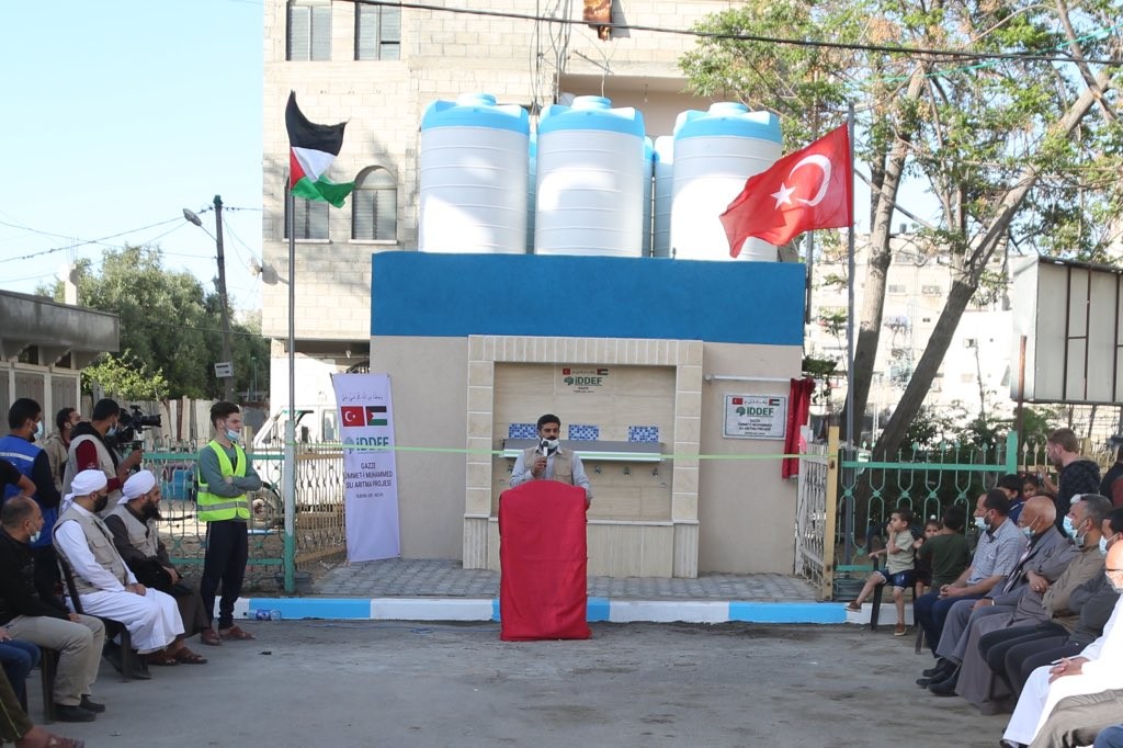 İDDEF’tensu arıtma projesiyle ilgili yapılan açıklamada, “Afrika ve Asya’da su kuyuları ve diğer su çözümleriyle insanlığı temiz suya kavuşturduğumuz gibi Filistin’in Gazze Şeridi’nde de en temel yaşam kaynağı olan suya sağlıklı bir şekilde ulaşılması için harekete geçtik. Hayırseverlerimizin desteğiyle Ramazan’dan önce yapımına başladığımız su arıtma tesisi, 6 çeşme ve 6 su deposundan oluşan projemizi tamamladık. Su tesisimiz için ilk etapta yeni bir su kuyusu kazıp, sondaj vurduk ve suyu tuzdan arındırmak için tesisimizi inşa ettik. İDDEF olarak, tuz ve yüksek oranda klorür, nitrat içeren kirli suları sağlıklı ve içilebilir hale getirip Filistin halkının kullanımına sunarak zor durumdaki kardeşlerimizin hayatını kolaylaştırdık” denildi.