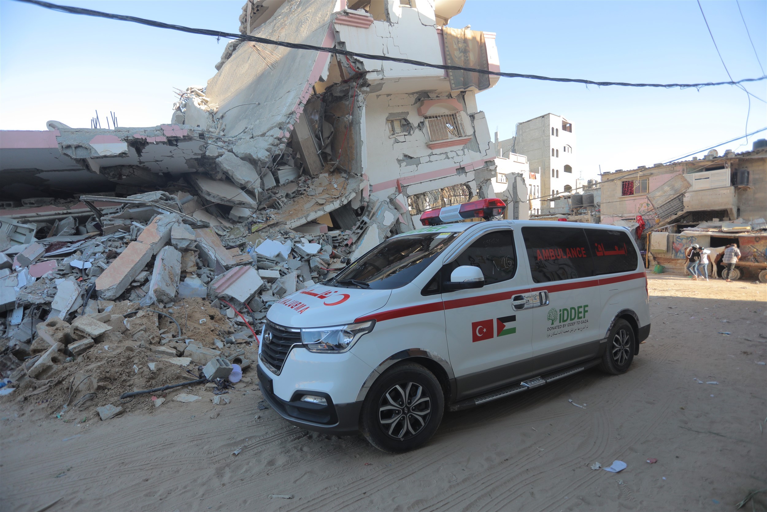 İDDEF, İsrail’in saldırıları sonucu zor günler geçiren Filistinlilerin yaralarını sarmak için Gazze’ye ambulans ulaştırdı.