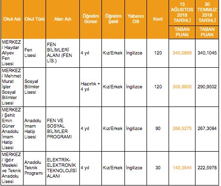 Iğdır liseleri 2019 taban puanları ve kontenjanları