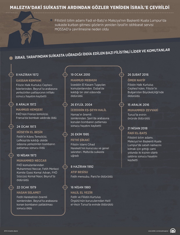 Suikasta uğrayan Filistinli akademisyen Fâdi Batş'ın İHA'lar üzerinde uzman olduğu ortaya çıktı. Mossad tarafından gerçekleştirildiği düşünülen suikast aslında bir ilk değil, 2 yıl öncede yine insansız hava araçları konusunda uzman Muhammed Zavârî suikasta kurban gitmişti.
