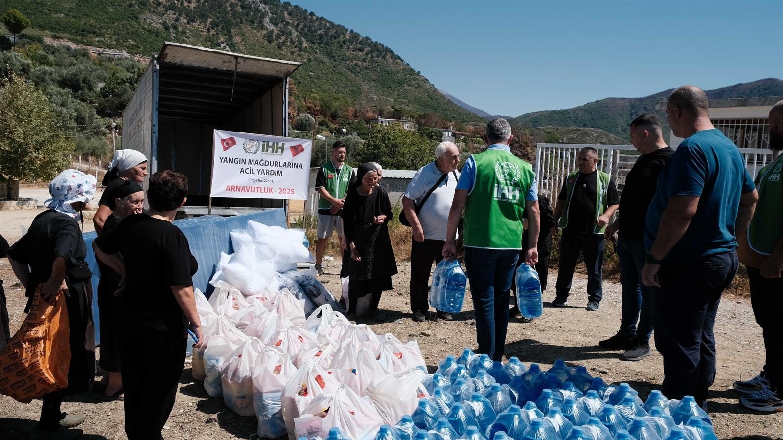 Arnavutluk’ta meydana gelen yangınlar sonrasında İHH İnsani Yardım Vakfı yangın mağdurlarına gıda paketi, içme suyu, yatak, battaniye ve yastık gibi yardım malzemelerini ulaştırdı.