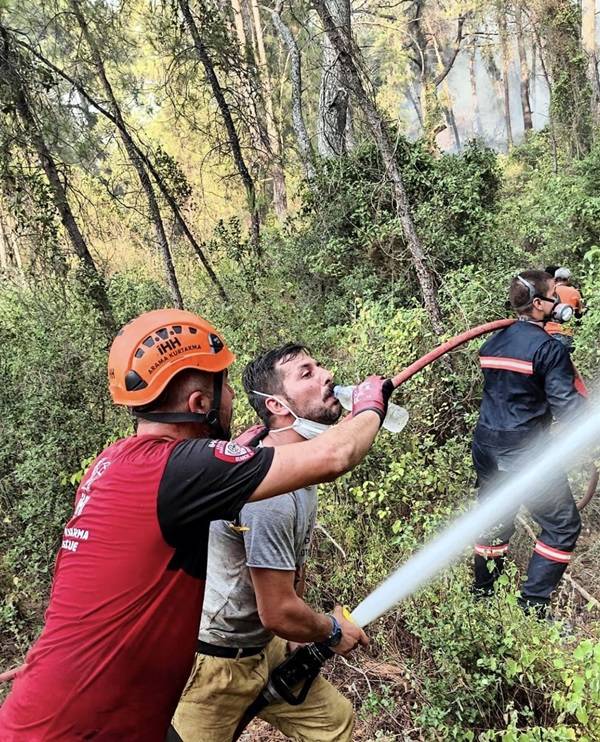 Değişik bir kelebekti. Doğaya ilgim olmasına rağmen daha önce görmemiştim hiç. Elimdeki su azaldıkça su ilave ettik. Yaklaşık 3 dakika, kelebek bu sudan faydalanmaya devam etti. Biz bir yandan insanları kurtarmaya çalışıyorduk. Fakat bu tablo, orman içerisinde doğal yaşamda olan hayvanların da afetten ne denli etkilendiğini, nasıl zarar gördüğünü bize göstermiş oldu.”