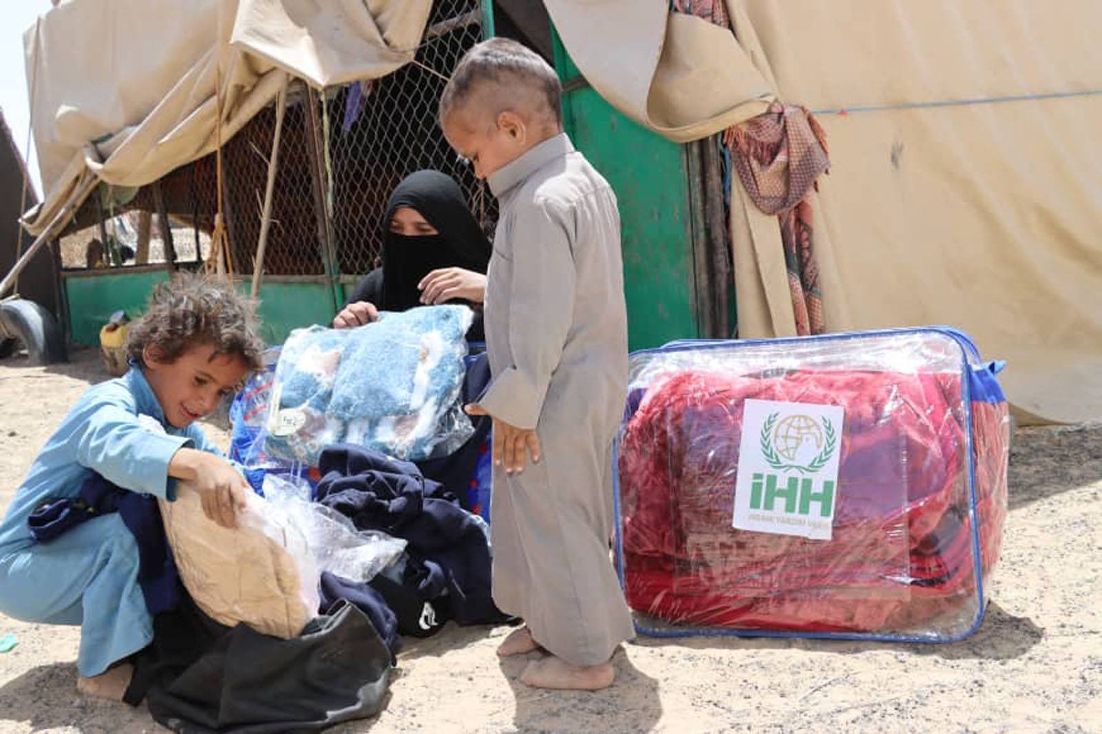 Uzun yıllardır Yemen’de insani yardım çalışmalarında bulunan İHH İnsani Yardım Vakfı,Marib ve Amran bölgelerinde yaşayan halka destek oldu. Bu kapsamda 902 aileye mont, elbise ve bin 804 adet battaniye dağıtıldı. Ayrıca 3 bin 610 çocuğa da kıyafet hediye edildi. İHH’nın ülkedeki yardım çalışmaları devam ediyor.