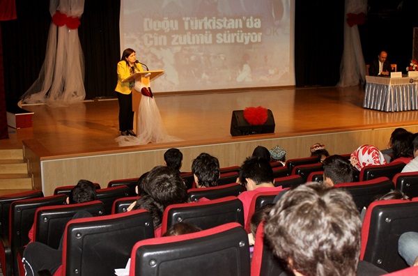 Panele katılan Prof. Dr. Mualla Uydu Yücel, yaptığı konuşmada Uygur coğrafyası hakkında öğrencilere geniş bilgiler verdi. Bölge tarihini anlatan Yücel, bölgede yaşanan sıkıntıları örneklerle anlattı. Bu sıkıntıların tüm Türkistan bölgesinde yaşandığına dikkat çeken Yücel, bu şiddetin artarak devam ettiğini söyledi.