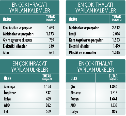 2015 yılında en çok ihracat yaptığımız 11. ülke olan Rusya, TUİK’in açıkladığı en çok ihracat yapılan ilk 20 ülke sıralamasında yer alamadı. 20. sıradaki Türkmenistan’a 140 milyon dolarlık ihracat yaptığımız düşünüldüğünde Rusya’daki rakam çok daha aşağıda. Öte yandan Rusya’dan gerçekleştirdiğimiz ithalat da yüzde 30,1 azalarak 1 milyar 150 milyon dolara geriledi. Fakat Rusya hâlâ en çok ithalat yaptığımız 3. ülke konumunda.