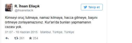 Gezi imamı olarak bilinen İhsan Eliaçık sosyal medya hesabı üzerinden yine tepki çeken bir açıklama yaptı.