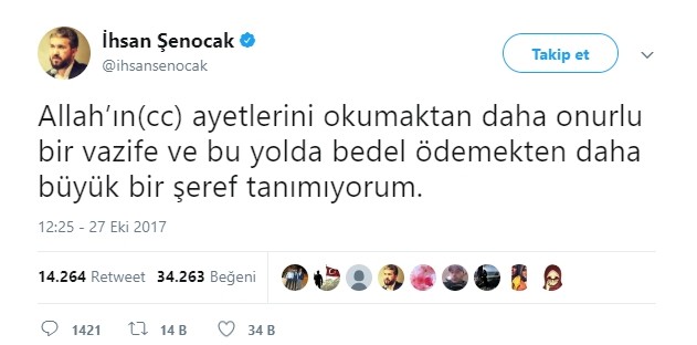 Görevden alınan İhsan Şenocak sosyal medya hesabından böyle tepki vermişti: