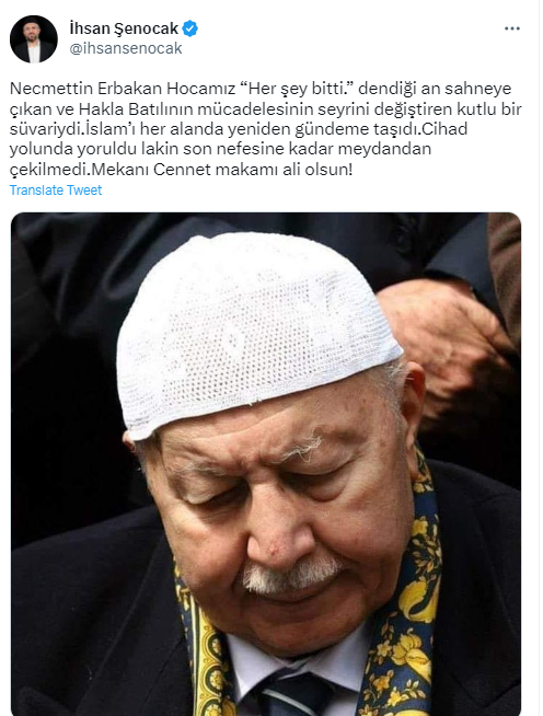 Fıkıh Doktoru İhsan Şenocak da merhum Erbakan Hoca için duygulandıran bir mesaj paylaştı.