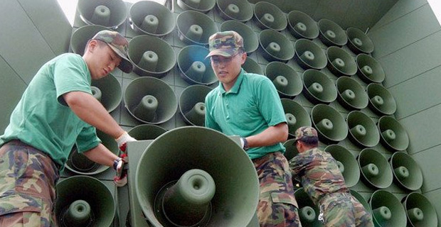 İki ülkenin savaşında ne tank var ne top ve ne de tüfek. Bu savaş hoparlör üzerinden yapılıyor. Önce Güney Kore başlattı. Kuzey Kore hidrojen bombası denemesi yapınca sınıra sıra sıra höparlörler dizdi. Ardından da düğmeye basıp müzik yayınına başladı. Kuzey Kore'deki insan hakları ihlalleri ile birlikte hava durumu ve diziler de müzik yayını arasında veriliyor. Hoparlörlerden çıkan ses Kuzey Kore'nin 10 kilometre içlerine kadar yayılıyor.
