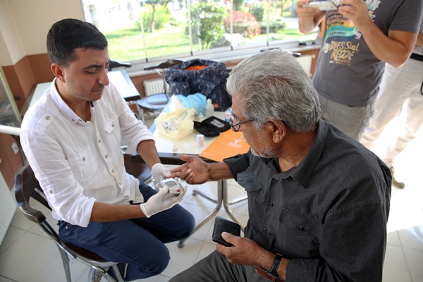 İkinci Bahar Kıraathanesi'ne üye olan yaşlıların tansiyon ve kan şekeri ölçümleri, Sağlık İşleri Müdürlüğü'ne bağlı ekipler tarafından yapıldı. Ölçülen değerler, yaşlıların tansiyon ve kan şekerlerini takip edebilmeleri için bilgi kartlarına yazıldı. Tansiyon ve kan şekeri yüksek olan yaşlılara, neler yapmaları ve beslenmelerine ne şekilde dikkat etmeleri gerektiği anlatıldı.