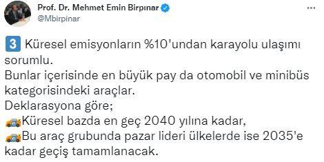"İklim değişikliği ile mücadelede önemli adım. Dünya, elektrikli araçlara geçişi hızlandırmak için uzlaşı sağladı. Glasgow'da devam eden 26. İklim Değişikliği Taraflar Toplantısı meyvelerini veriyor. En geç 2040 itibari ile yeni araçlar sıfır emisyonlu olacak.