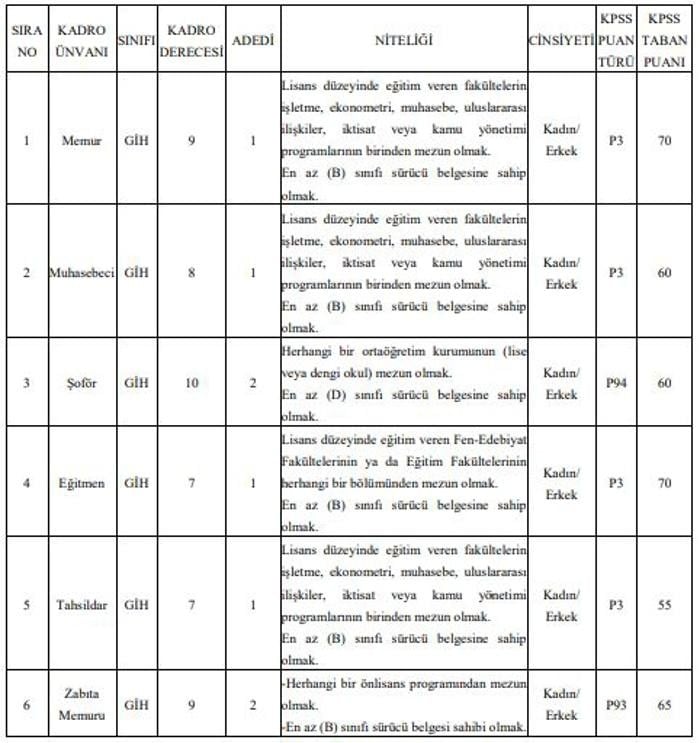 Çorum ili İskilip Belediye Başkanlığı bünyesinde istihdam edilmek üzere, KPSS taban puanı ve diğer şartları taşımak kaydıyla, belirtilen boş kadrolara açıktan atama yolu ile memur alımı yapılacağı açıklandı.