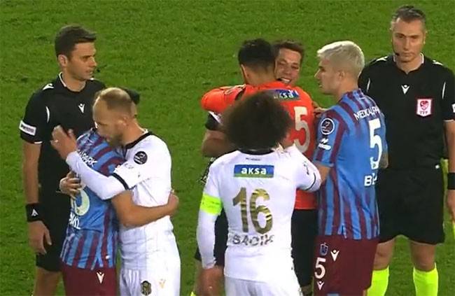 Yeni Malatya'nın kalecisi Ertaç, Trabzon maçının bitiş düdüğüyle sert bir şut çekti. Ertaç'ın çektiği top, hakem Fırat Aydınus'un kafasına isabet etti. Ertaç, Aydınus'un yanına koşup özür diledi. Ortaya renkli görüntüler çıktı.