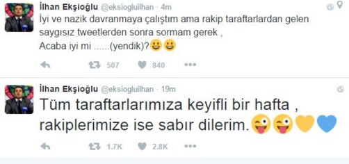 Fenerbahçe Asbaşkanı İlhan Ekşioğlu maç sonrasında twitter adresinden ilginç bir mesaj paylaştı.