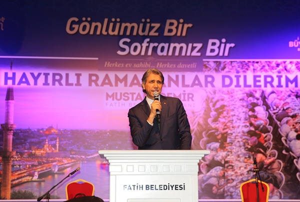 Geleneksel hale gelen top atışı ile İstanbul’un iftar saatini başlatacaklarını ifade eden Fatih Belediye Başkanı Fatih Demir iftar sofrasına misafir olan vatandaşlara teşekkür etti. Demir, “Bizim küçüklüğümüzde ezan okunduğunu değil top patladı mı diye iftar yapalım derdik. İstanbul’da Ramazan’ın topunu burada patlatacağız. Dünya’nın her tarafından gelen misafirlerimiz ile herkesin eşit olduğu bir sofrada, tarihin en önemli yerinde iftar yapmış olacağız. Dünya da yaşayan tüm insanlara Ramazan münasebetiyle huzur, barış ve mutluluk gelir. Bize daima sorarlar neden Ramazan da iftar Sultanahmet’te bulunmak insanı bu kadar heyecanlandırır. Ramazan’ın nu ulvi atmosferinden bir şeyler kazanmak için insan hiç tanımadığı insanlar ile aynı sofrayı paylaşıyor” ifadelerini kullandı.
