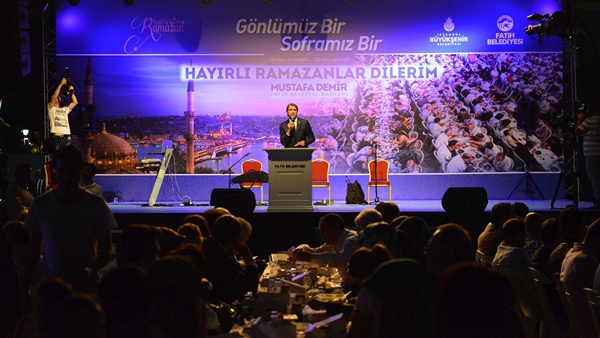 Türkiye’de ilk kez 2005 yılında Fatih Belediye Başkanı Mustafa Demir tarafından başlatılan sokak iftarı kültürü geleneğini sürdürmeye devam ediyor. Ramazanın ilk gününde binlerce vatandaşı aynı sofrada buluşturan Fatih Belediyesi Sultanahmet Meydanı’nda kurulan dev iftar sofrasında yerli ve yabancı çok sayıda vatandaşı konuk etti.