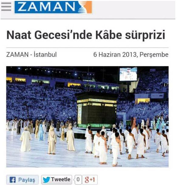 2 yıl önce 11. Türkçe Olimpiyatları kapsamında İstanbul'daki Sinan Erdem Spor Salonu'nda gerçekleştirilen Naat Gecesi'nde Fetullahçılar Kâbe maketi etrafında temsili olarak çocuklara tavaf yaptırmışlardı.