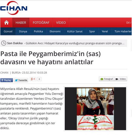 Üsküdar Belediyesi'nin kutlu doğum haftası ve bir ilçe müftülüğünün pasta yarışması ile dalga geçen Paralel örgütün ilk Kabe maketini ve ilk Kuran yazılı pastayı yaptığı ve bunu da kendi medyasında gururla yayınladığı ortaya çıktı. Kendi yaptığı rezillikleri unutarak başka etkinliklerle dalga geçen Paralel örgüt medyası pişkinlikte sınır tanımıyor.