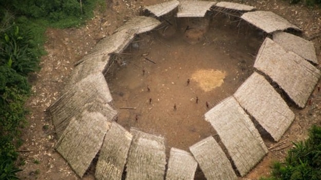 Amazon yağmur ormanlarının tam içinde dairesel bir yapıya sahip Yanomami gruplarından bir tanesinde yaşayan insanların uçaktan fotoğrafı çekildi. İlk kez uçak gören bu insanlar, neler olduğunu ve ne gördüklerini anlamayarak hayretle uçağa doğru baktılar. Bu hayret çekilen fotoğrafa da yansıdı.