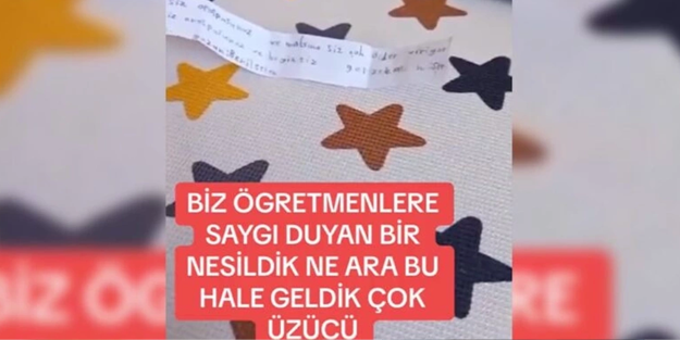Okuduğu notu sosyal medyada paylaşan öğretmen ''Biz öğretmenlere saygı duyan bir nesildik. Ne ara bu hale geldik, çok üzücü” notuyla paylaştığı videoyu “Kendinizi benim yerime koyun. Ben bu çocuğu sınıfımda istemiyorum'' ifadelerini kullandı.