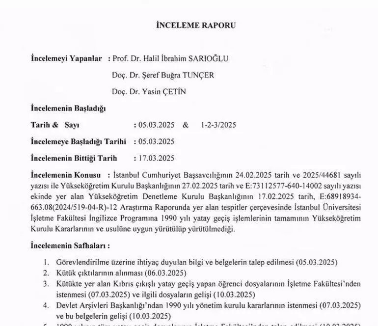 İstanbul Üniversitesi Rektörlüğü İnceleme Komisyonu, 1990 yılında Girne Amerikan Üniversitesi’nden usulsüz yatay geçiş yapan dokuz kişinin de aynı hileli yöntemle İstanbul Üniversitesi’ne kaydının yapıldığını belirledi.