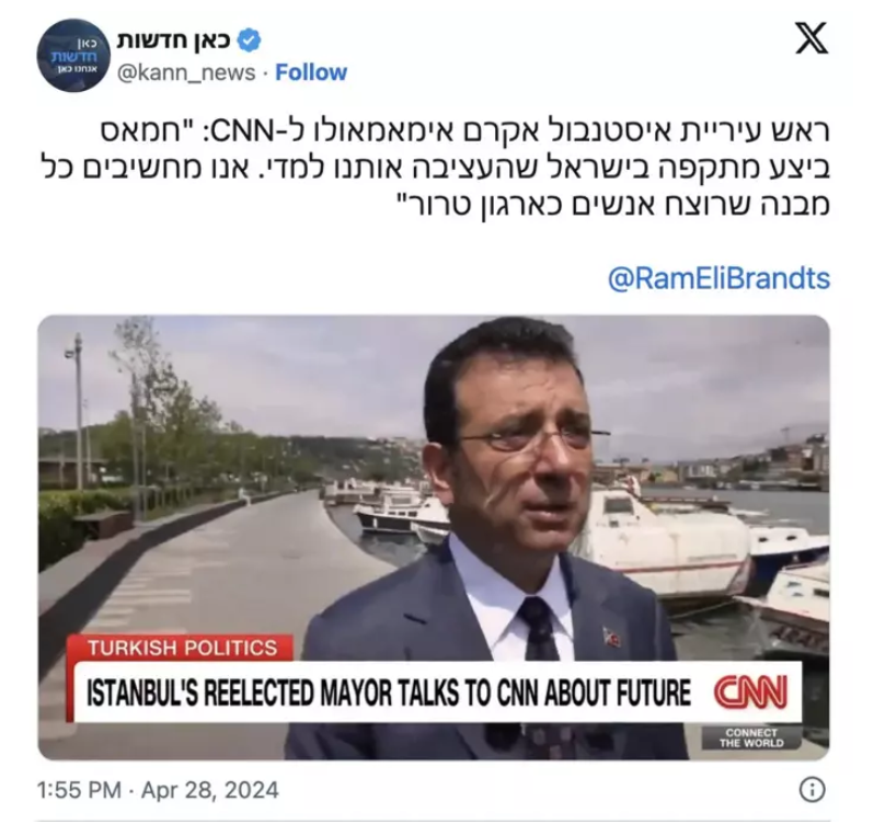 Ekrem İmamoğlu'nun bu sözlerine İsrail basını geniş yer verdi. İsrail merkezli The Jerusalem Post gazetesi, İmamoğlu'nun röportajını paylaştı.