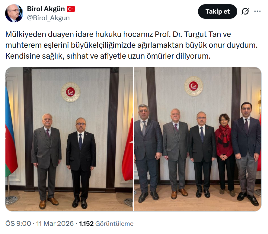 Türkiye'nin Bakü Büyükelçisi Birol Akgün’ün, yolsuzluk ve rüşvet tutuklusu Ekrem İmamoğlu’nun şaibeli diplomasını kurtarmak için hukuk eğip büken Prof. Dr. Turgut Tan’ı büyükelçilik makamında kabul etti.
