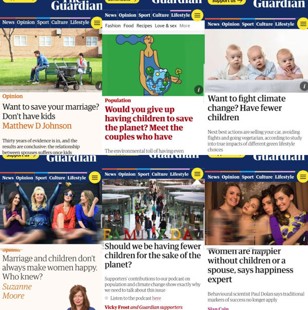 The Guardian gazetesinde çok kısa süre içerisinde çıkan 6 haber "çocuk yapmayın" temasını işliyor. Haberlerden biri “İklim değişikliği ile mücadele için daha az çocuk yapın” demekte. Burada mesele gerçekten duyarlılık değil, bir propaganda. İmamoğlu'nun LGBT gündemi de böyle.