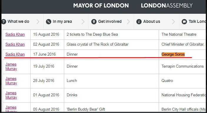 Ekrem İmamoğlu gibi LGBT konusunu bir imza hâline getirmiş Sadiq Khan seçildikten sadece 1 ay sonra George Soros'u baş başa akşam yemeğine Londra'ya davet etmiş. Seçim sürecindeki fonların bir teşekkürüydü muhtemelen.