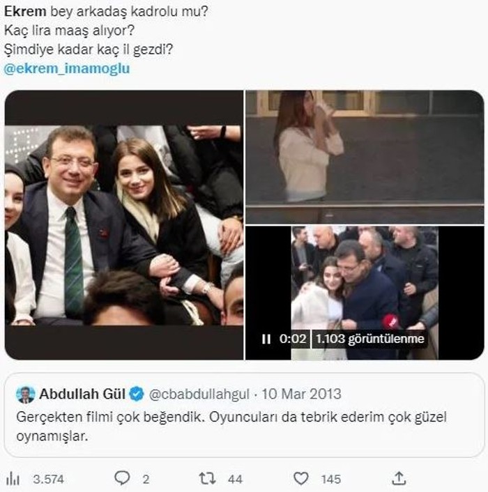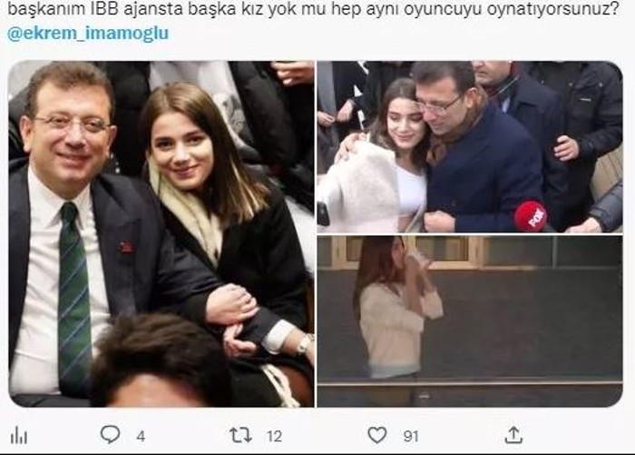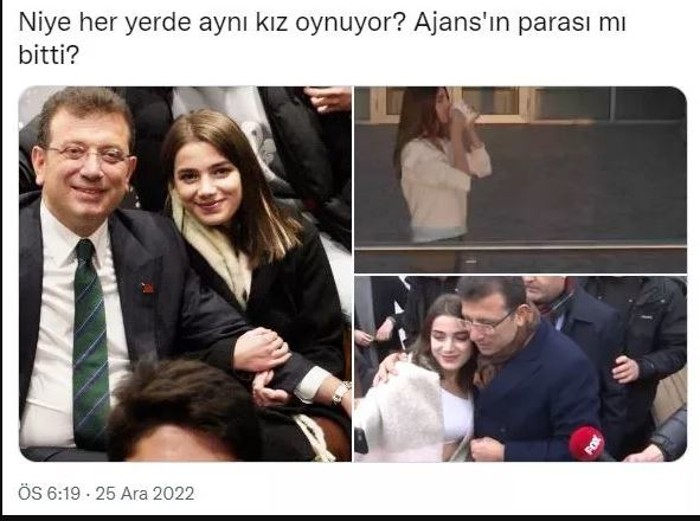 Sosyal medyaya ortaya çıkarılan görüntülerde ise İmamoğlu'nu övgüye boğan genç kızın ilk defa değil daha önceleri de İmamoğlu ile beraber görüntülendiği ortaya çıktı. Hatta o kızın İBB'nin bir reklam filminde de oynadığı görüldü.