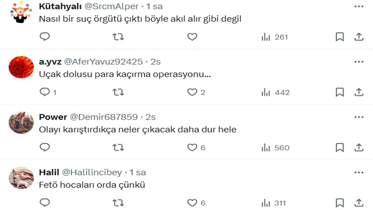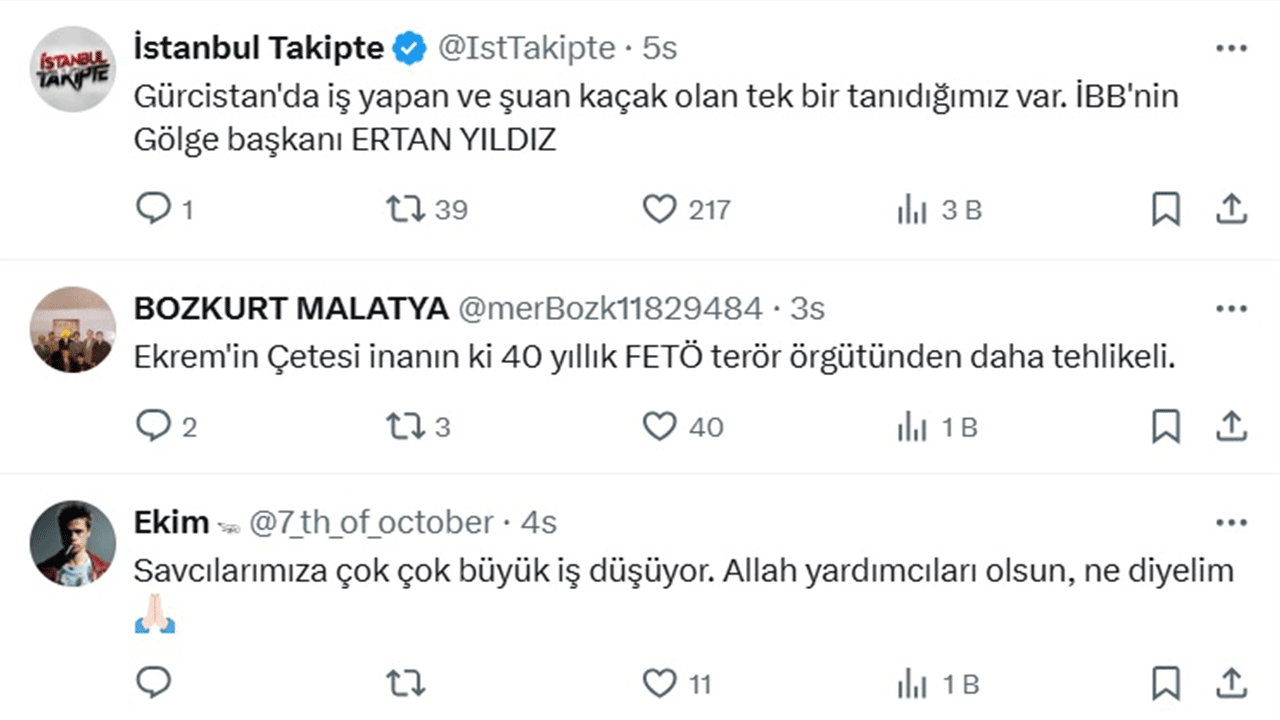 Konuyu sosyal medya hesabından değerlendiren İmamoğlu karşıtı eski CHP'li isimlerden Tolgahan Erdoğan, "Günün bomba sorusu Bon Air'e ait TC STN kuyruk kodlu uçak 14 Mart Cuma günü neden Gürcistan'a gitti? Gürcistan'a kimi götürdü? Ne götürdü? Veya kimi, neyi getirdi? Bon Air hafta sonu yaptığım haberden sonra Flight Aware isimli sistemden uçağın uçuş geçmişini neden kaldırdı? Yoksa turbun büyüğü Gürcistan'da mı?" diye sorarak İçişleri ve Adalet Bakanlıklarını göreve çağırdı.