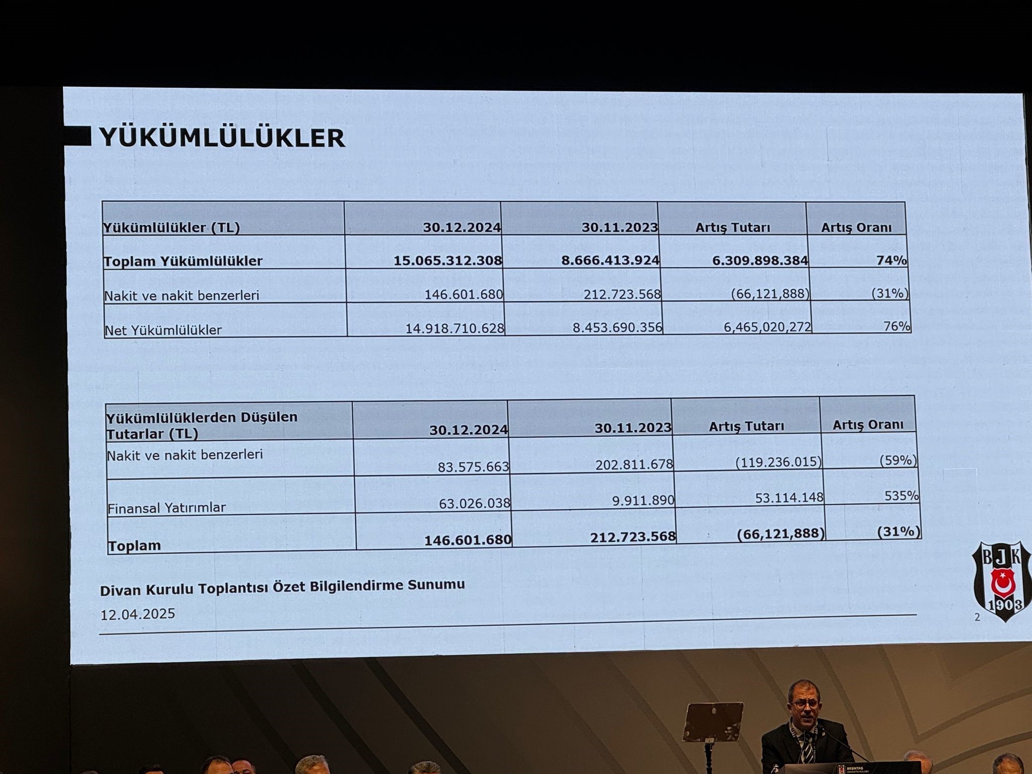 Şentürk, 31 Aralık 2024 tarihi itibarıyla siyah-beyazlı kulübün borcunun 15 milyar 65 milyon 312 bin 308 TL olduğunu açıkladı.