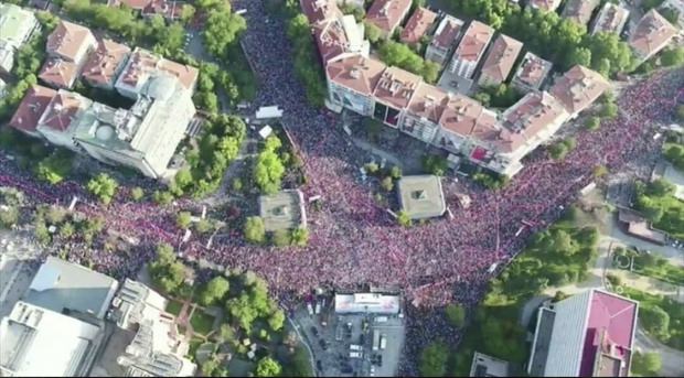 CHP'nin adayı Muharrem İnce, Ankara'da yaptığı mitinge katılımın 2 milyonu bulduğunu söyledi ancak meydana yukarıdan bakınca, meydanın ve meydana çıkan caddelerin ebatlarını göz önünde bulundurunca rakamın 50 bini zar zor bulduğu ortaya çıktı.