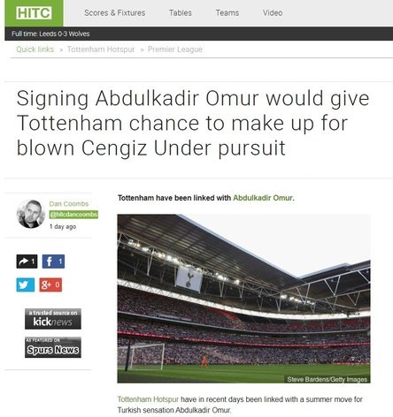 Henüz 18 yaşında olan genç yetenek için Tottenham'ın transfer planı yaptığı "Cengiz Ünder'i Roma'ya kaptırdık, onun yerine Abdülkadir Ömür'ü alalım" başlığıyla servis etti.