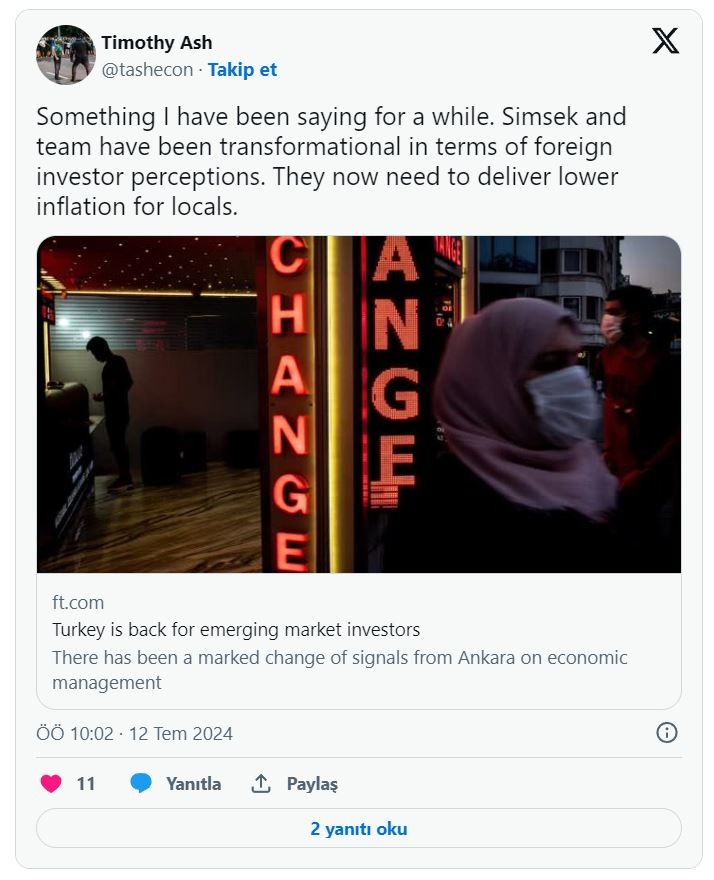 FT'nin "Türkiye, gelişmekte olan piyasa yatırımcıları için geri döndü" başlıklı haberini de paylaşan Ash, paylaşımında şunları yazdı: