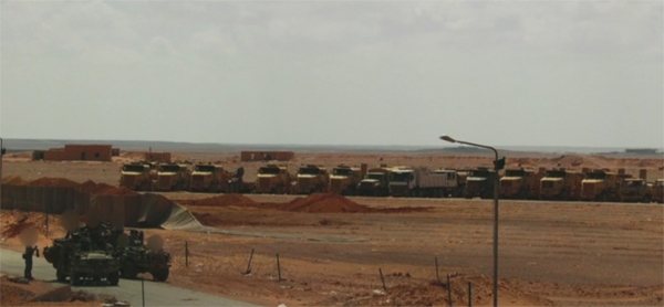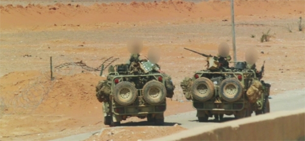 Devriye araçları içerisindeki İngiliz askerler, Suriye-Irak sınırı yakınlarında muhaliflerin üs olarak kullandığı bir bölgenin çevresinde duruyor.