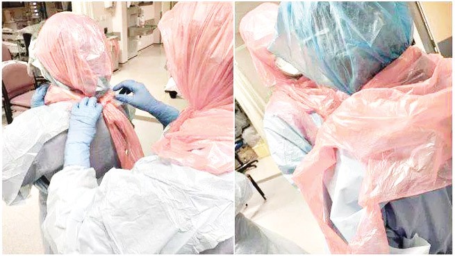 Servislerde hastalar ile ortalama 13 saat geçiren doktorların bu vaziyeti, ülke genelinde büyük tartışmalara neden olurken, poşetten önlük/tulum yapan doktorların kayak/yüzme gözlüklerini de koruyucu gözlük yaptığı belirtildi.