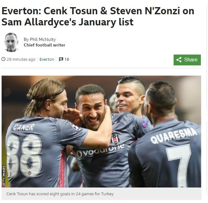 Beşiktaş'ın yıldız futbolcusu Cenk Tosun Ocak ayında 25 milyon sterlin bonservis ücretiyle İngiliz ekibi Everton'a imza atacak.