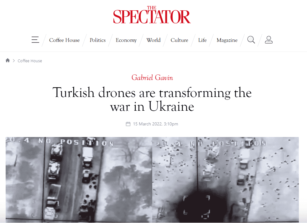 Rusya-Ukrayna savaşında seyir değiştiren Bayraktar dünya medyasının gündeminde yer almaya devam ediyor. İngiliz The Spectator, Türkiye’nin gururu Bayraktar’dan övgüyle bahsetti ve İngiltere ile kıyasladı.