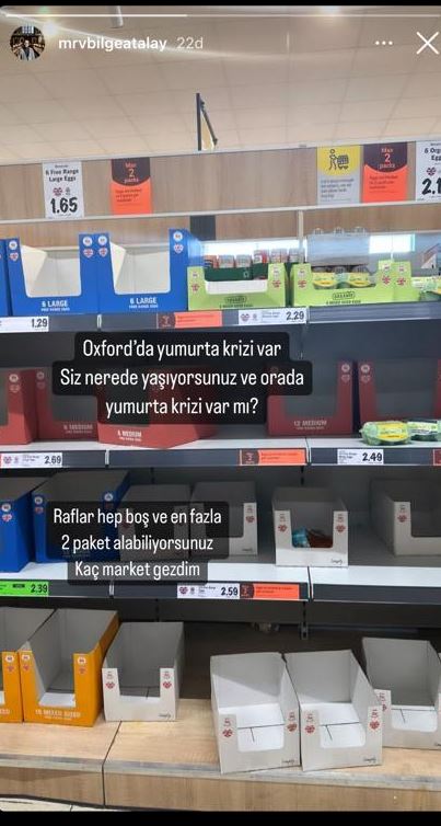 Bende manchester da yasiyorum 3 aydir burdaki buyuk marketlerde de yumurta krizi var. Yumurta geliyo bir gunde 2 palet tukeniyor Uzun bacakli ingilizlerden kalirsa biz aliyoruz :)))