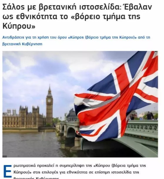 SigmaLive gazetesi, "İngiliz web sitesinde tartışma: 'Kıbrıs'ın kuzey kısmı' milliyet olarak listelendi" başlığıyla haberi duyurdu.