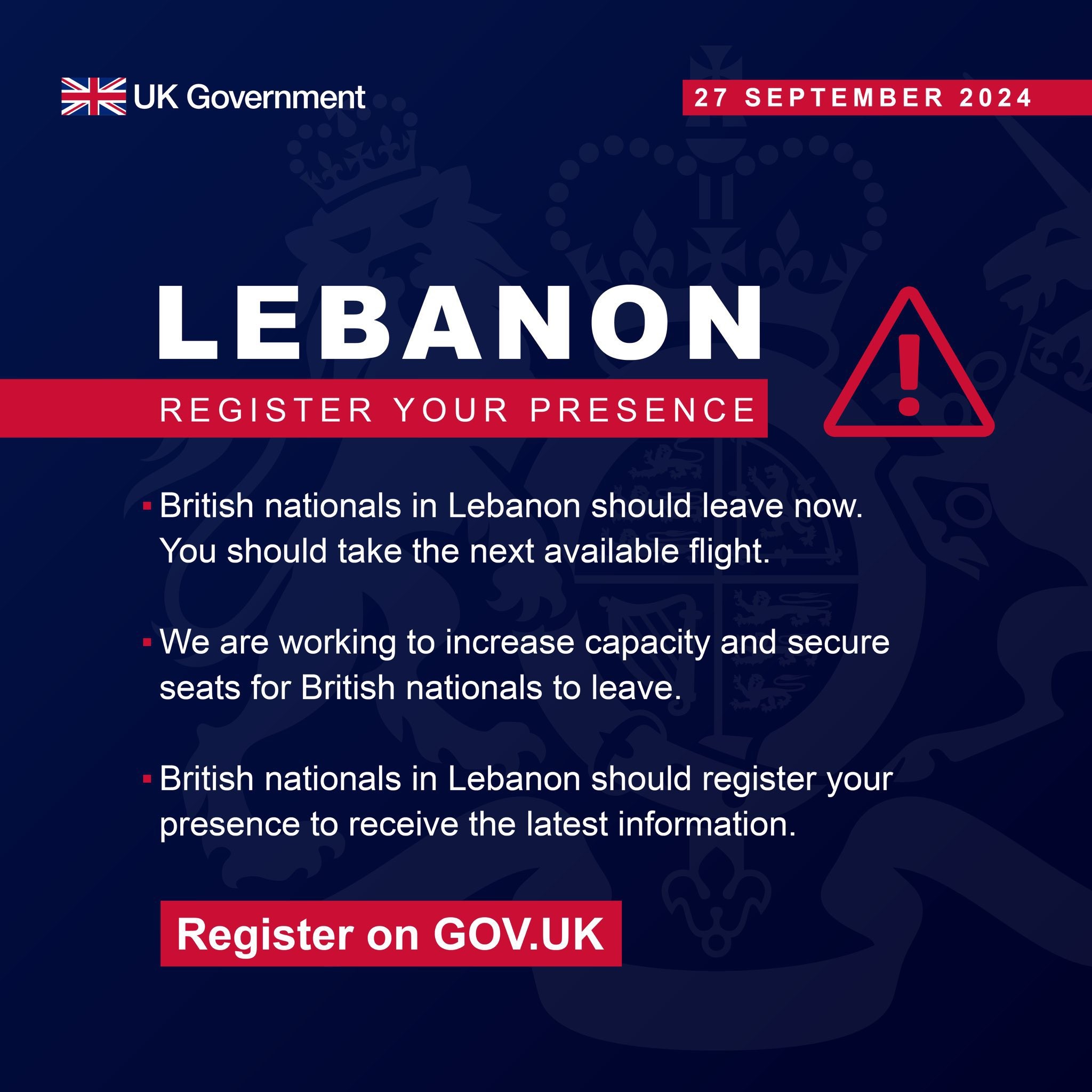 İngiltere hükümeti, Lübnan'daki İngiliz vatandaşlarına 'bir sonraki uygun uçuşla' derhal ülkeyi terk etmeleri çağrısında bulundu.