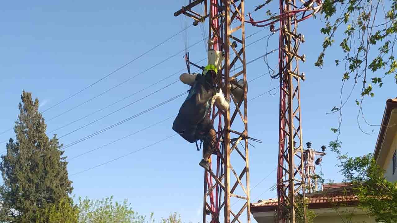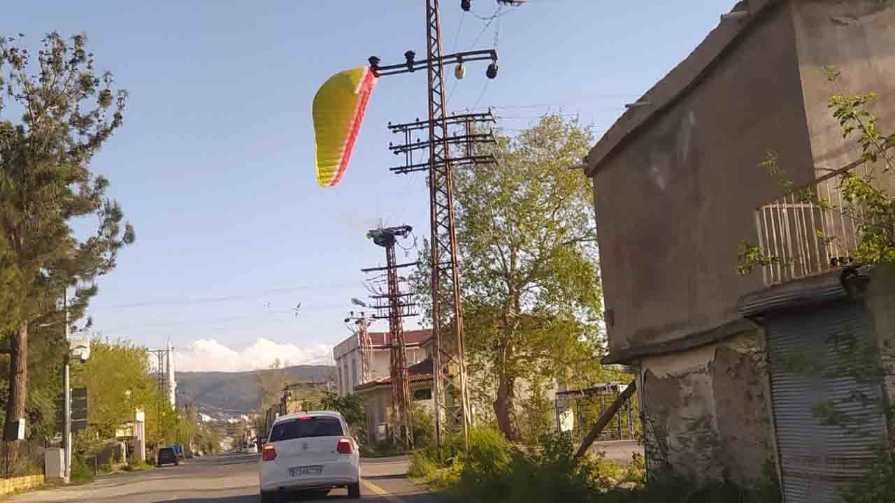 İniş kabusa döndü: Paraşüt pilotu elektrik tellerine takıldı