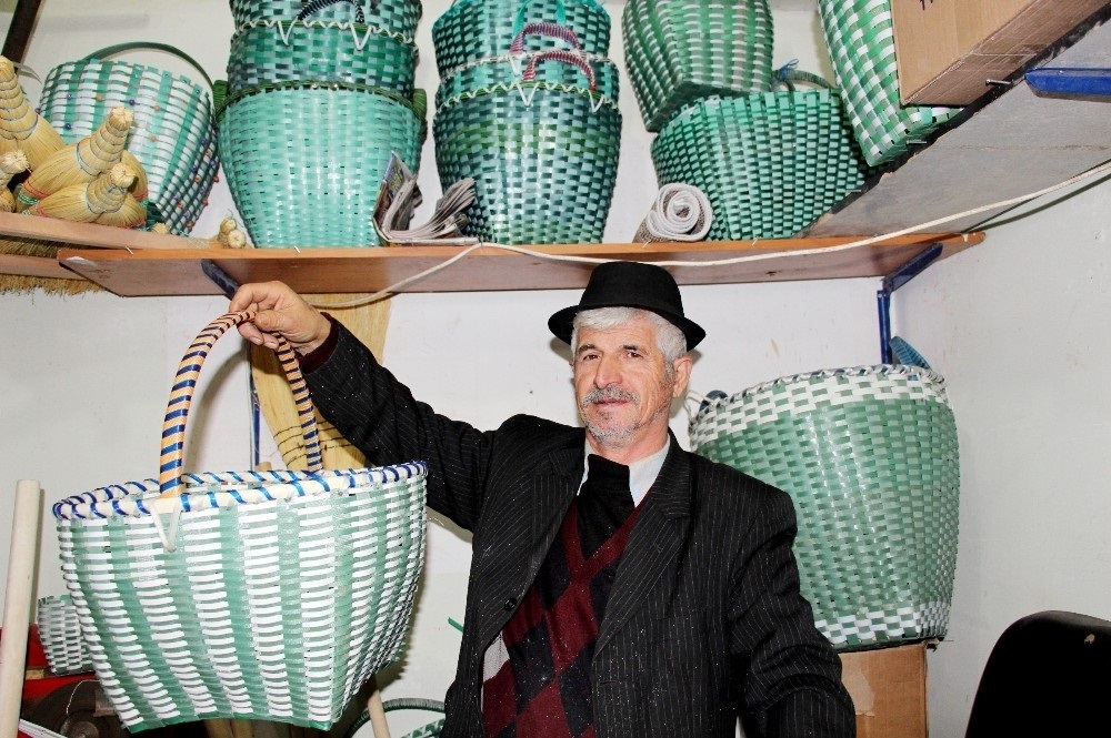 Dünyada bu yöntemle sadece kendisinin sepet ördüğünü ifade eden Parlak, inşaat artıklarından geri dönüşüm sağlayarak böyle bir meslek kazandığı için çok mutlu olduğunu dile getirdi.
