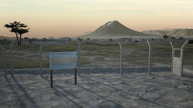 Volkanik bir dağın oluşturduğu çamur tabaka üzerinde binlerce yıl şekillerini koruyan ayak izleri, bilim çevrelerince hazine niteliğinde görülüyor.