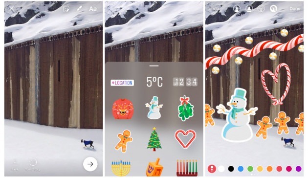 Instagram bu güncellemede tam da sezonu olan noel ve yeni yıl konseptli çıkartmalarını ön plana çıkartmış. Aylık aktif kullanıcı sayısı 600 milyonu geçen Instagram, getirdiği yeni özelliklerle hem kendini sürekli yeniliyor hem de rakiplerinin iddialı özellikleri kendine entegre etmeyi sürdürüyor.